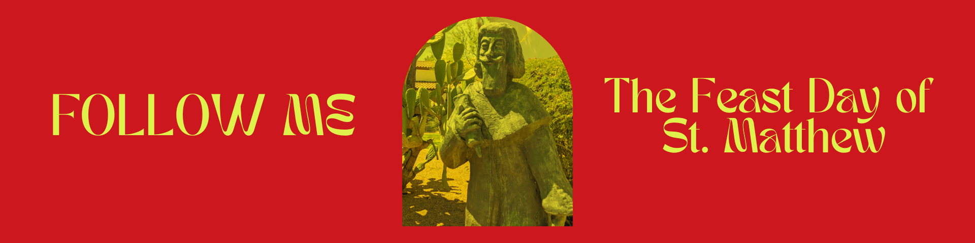 Join us in celebration of the Feast Day of St. Matthew by wearing red! St. Matthew, for whom our church is named, was a tax collector before being called by Jesus to follow Him. Often depicted in Christian art with a tax collector's booth or a pen and book, Matthew is recognized as the author of the Gospel of Matthew and provides a detailed account of Jesus’ life, teachings, death, and resurrection, emphasizing His role as the Messiah. As the patron saint of tax collectors, accountants, and bankers, Saint Matthew’s feast day is a time to reflect on his contributions to the early Christian community. How can we follow Jesus? Consider putting your time and talent to work with a ministry at Saint Matthew’s. Meet someone new at coffee hour, sign up to read, explore a study group you haven’t attended, or start your own group if you don’t find a topic or time that suits you. Rejoice in the Holy Spirit and follow your calling!